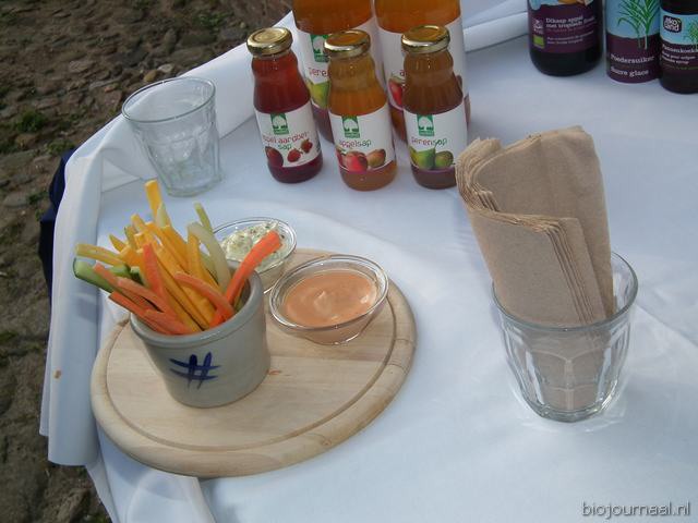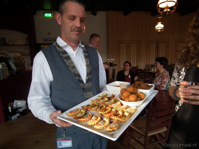 Allerlei biologische en vegetarische hapjes bij de borrel.