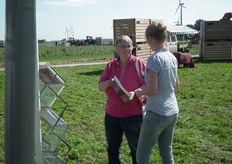 Heleen Klinkert van Bionext geeft een bezoeker wat brochures mee.