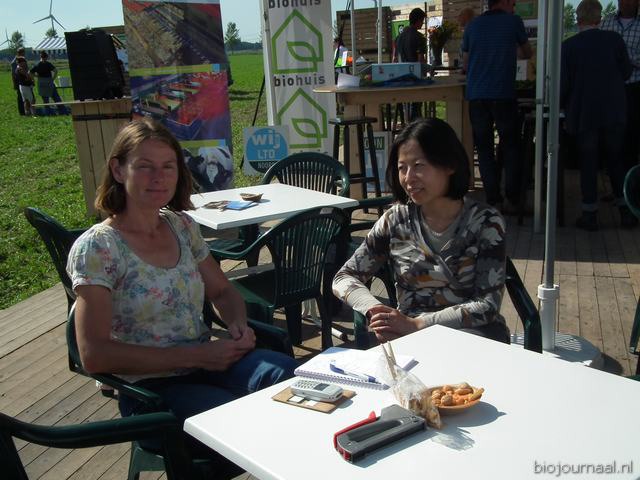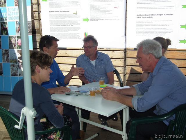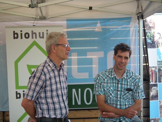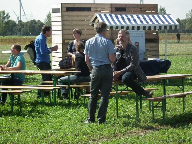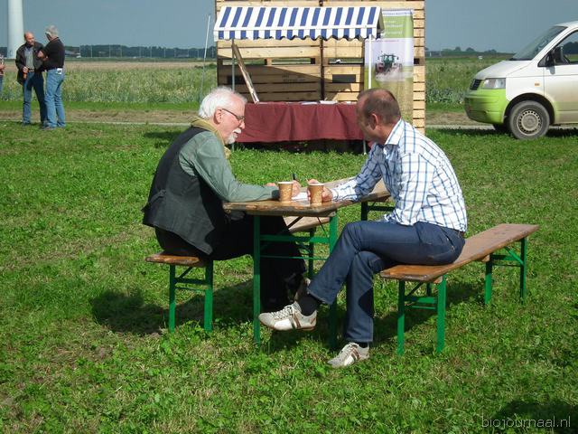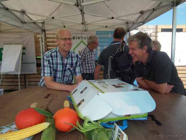 Jan Jaap Jantjes (rechts), voorzitter van Biohuis, heeft gedurende de velddag aan veel bezoekers uitgelegd wat Biohuis nu precies inhoudt.