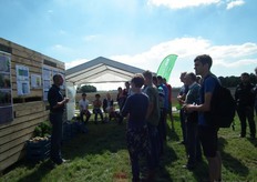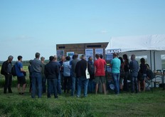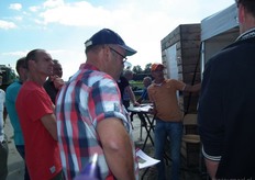 WUR-onderzoeker Wijnand Sukkel heeft een grote groep belangstellenden om zich heen verzameld.