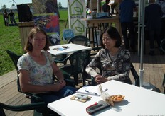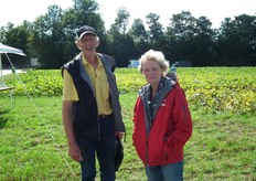 Links 'pompoenman' Kees van Wijk en rechts Edith Lammerts van Bueren, Senior Onderzoeker Veredeling van Louis Bolk Instituut.