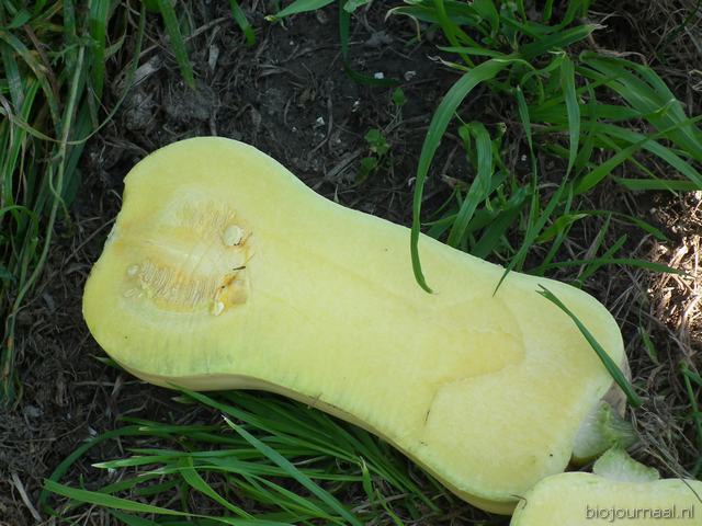 Dit is goed te zien wanneer de pompoen doorgesneden is.