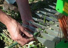 De Combcut kamt het gewas eerst. Bovenin zijn de kammetjes goed te zien.
