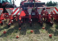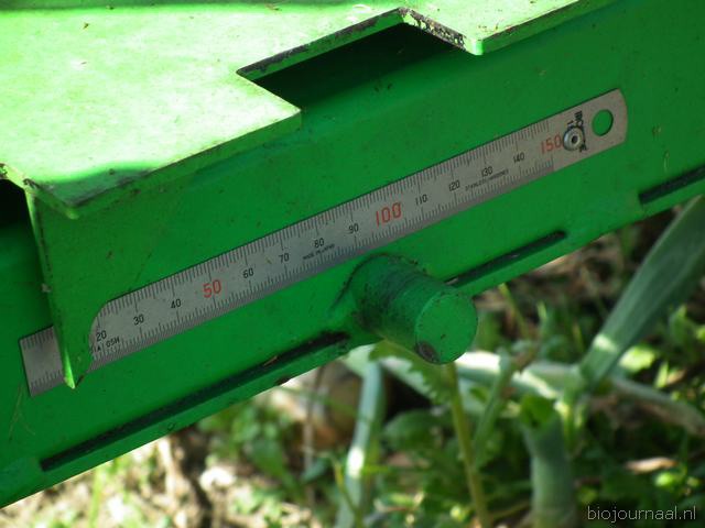 "Door de regelmaat in plantafstand die hierdoor ontstaat kan de pompoenteler veel arbeidsuren besparen op het bedrijf." (bij het wieden vóór de groeispurt)"