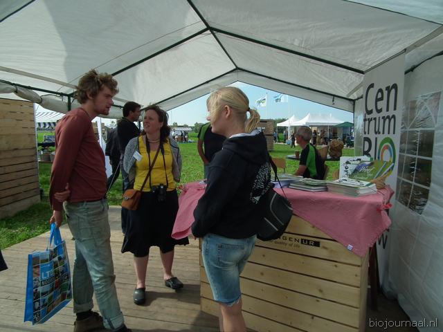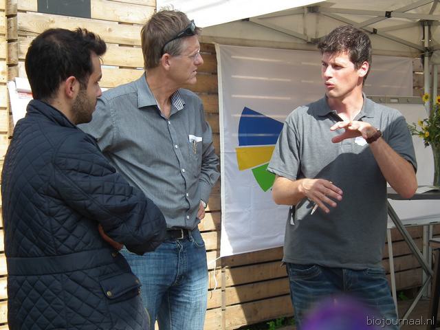 Kees van Zelderen (midden) in gesprek in de Biohuis-stand.