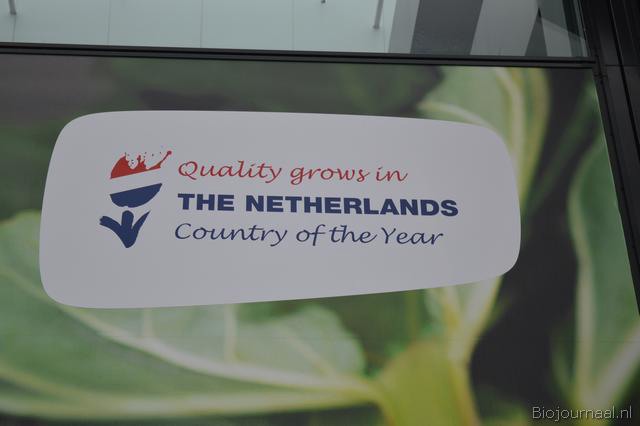 Boven de ingang al aandacht voor het feit dat Nederland Partnerland - Country of the Year - is.