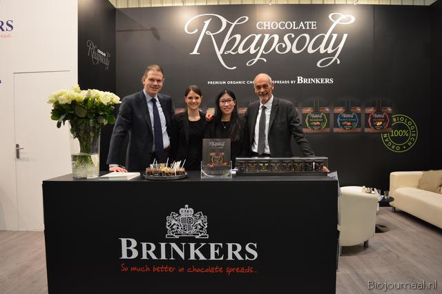 Folmer Zijlstra, Daniela Rath, Qian Lu en Danny Schuwer van Brinkers Food BV. De nadruk lag dit jaar op de Chocolate Rapsody.