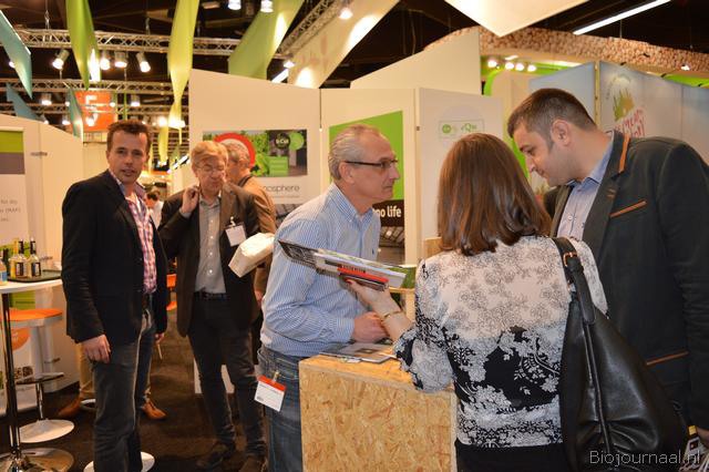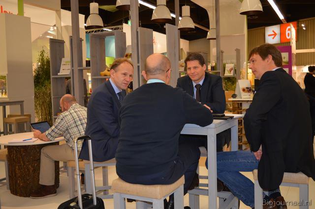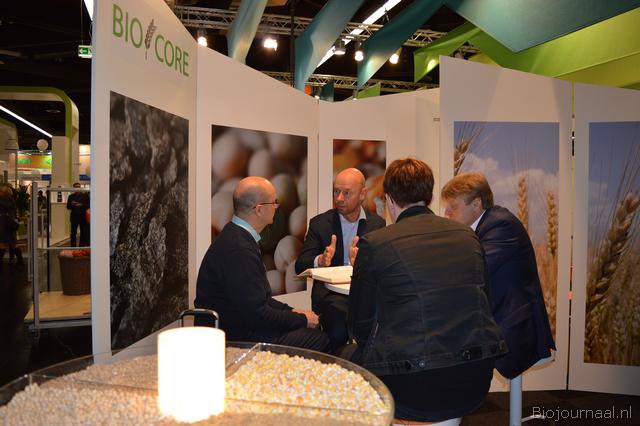 Marco Molier (midden) in gesprek in de stand van BioCore.