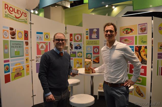 Charles Deacon en Diederik van der Wiele (Market Endeavour) presenteerden de nieuwe producten van Roley's: glutenvrije stroopwafels en 'Farmer Breadmix' met haver.