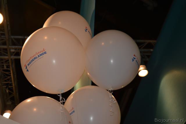De Nederlandse exposanten waren veelal te herkennen aan deze ballonnen in de stand.