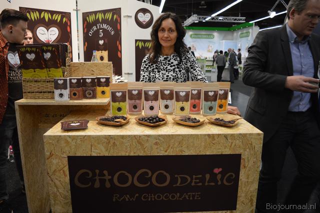 Irene van Herwenden staat letterlijk achter de producten van Chocodelic. Nieuw zijn: Choco Fruit Raisins, Choco Seed Pumpkin en Choco Nuts Cashew.