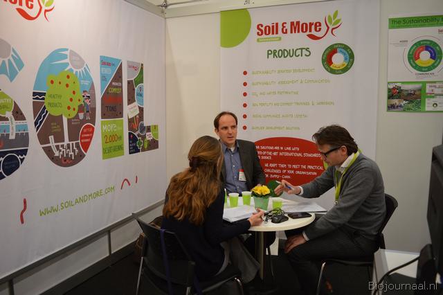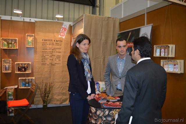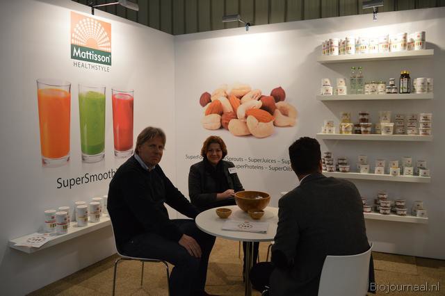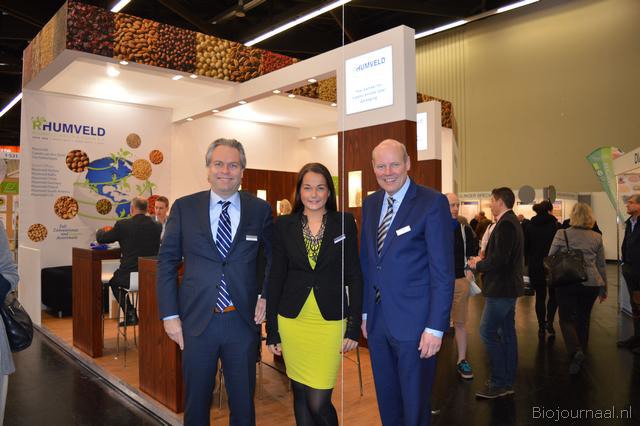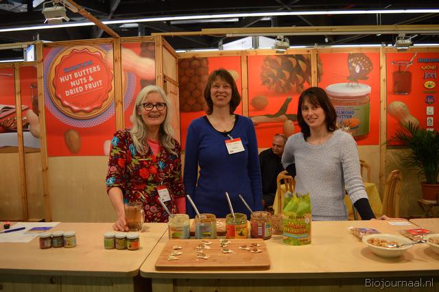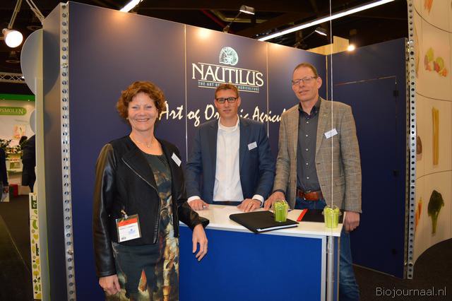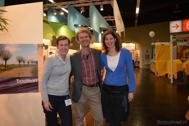 "Emmy Rood-Zelhorst, Barry Raadschelders en Han Kavelaars van Nautilus Organic. Emmy: "We merken nu al dat er een heel ander publiek op deze beurs afkomt. Op de Bio-beurs spreken we vooral onze telers en hier juist vooral de kopers."