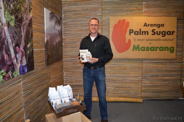 "Bastiaan Bais van Amigos International presenteerde de Palm Sugar van Masarang op de BIOFACH. Bastiaan: "Ik hoop tenminste een paar goede contacten aan deze beurs over te houden."