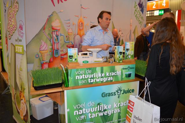Nick Sluijter van Grass2Juice kreeg de kans om zijn tarwegrassap te laten proeven in de stand van de Ice Cream Factory.
