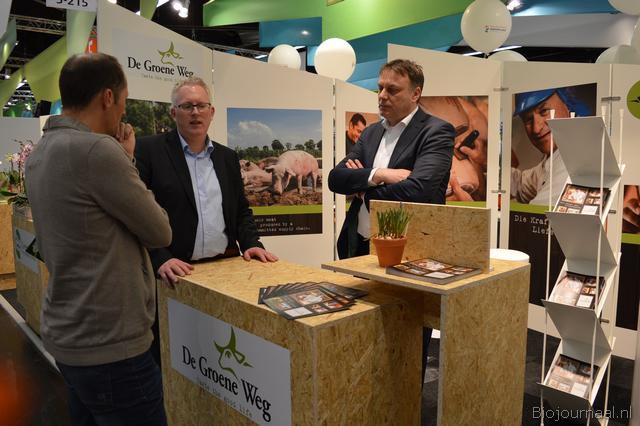 Allard Bakker en Ronald Roenhorst van De Groene Weg. De stand heeft een nieuwe uitstraling gekregen vergeleken met andere jaren.