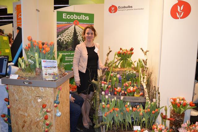 Annelies Timmerman met de biologische bloemen en bloembollen van Ecobulbs.