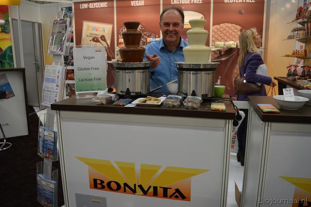 "Voor de chocolade kon men terecht bij Erik van Luyn. Nieuw van Bonvita zijn de repen met kokosnootsuiker. "Deze suiker heeft niet het effect van suiker, dankzij de lage glycemische index."
