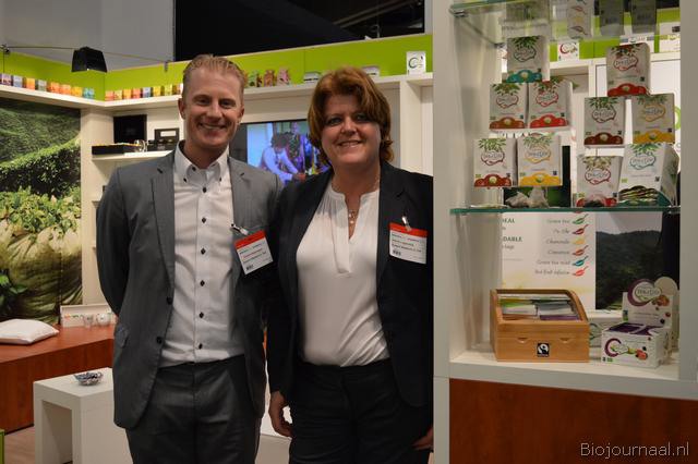 Ceriel Ostermann en Astrid Lagendijk van Axxent Masters in Tea BV. Zij hadden onder meer het theemerk Tea of Life meegenomen.