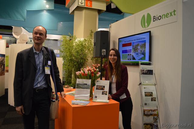 "Joren Groot en Hilbert van Hasselt vertelden dat biologisch ook binnen Nutland BV duidelijk een ontwikkelende markt is. Joren: "Alle bezoekers hebben wel potentie, daarom hebben we er weer zin in."