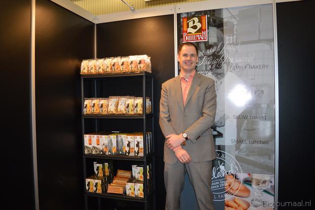 "Arjan van den Bosse liet bezoekers proeven van de nieuwe speltbol van Buitenman. "We hebben inmiddels een mooie biologische range neergezet en het is tijd om wat verder te kijken."