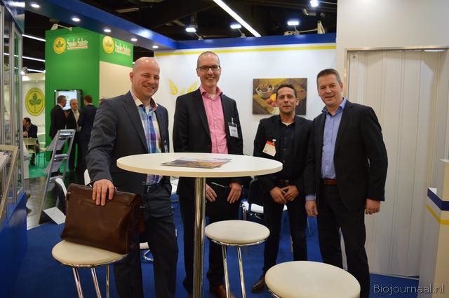 "Team SRC: Bart Rijborz, Anna Pisniak, Peter Oellers en Wout van Cadsand. SRC raffineert verschillende soorten plantaardige oliën & vetten voor de levensmiddelenindustrie. Peter: "De BIOFACH is de nummer 1 netwerkplek. Biologisch heeft ons veel gebracht. Van 2005 tot 2015 is het bio-aandeel binnen ons bedrijf van 9 naar 45% toegenomen."