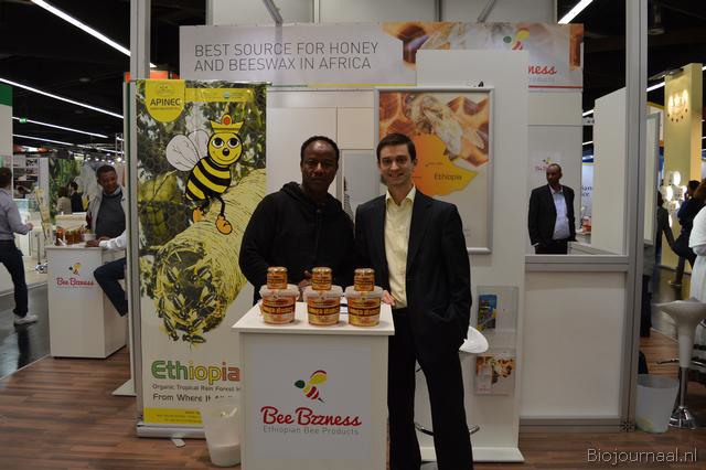 "Kasper Kerver van Profound met de Ethiopische honingproducent Wubishet Adugna. Kasper: "ProFound voert als consultancybedrijf handel met ontwikkelingslanden. We geven producenten van bijenproducten uit Ethiopië tijdens de BIOFACH de kans om hun producten te presenteren."