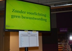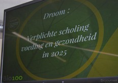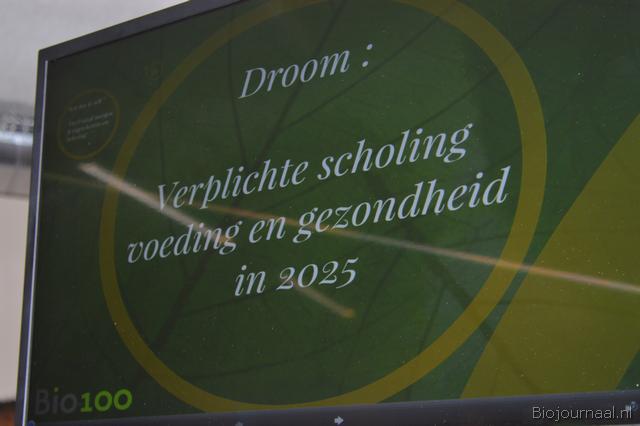 "Tafel 4 had het thema Scholing. Educatie is volgens deze werkgroep een belangrijk middel om de toekomstige consument bewust te maken van biologische voeding. Hun droom: Verplichte scholing voeding en gezondheid in 2025. "Deel vanaf morgen je eigen kennis en beleving", dat kan volgens de groep door als bio-teler naar scholen toe te stappen om een les over biologisch te geven."