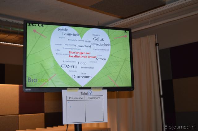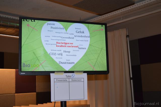 "De werkgroep aan tafel 7 zocht het hogerop met het statement 'Spaceship aarde krijgt weer waarde!'. Zij hadden het thema Duurzaamheid, aarde en milieu. Volgens deze groep draait het om de balans tussen duurzaamheid en bio. "Biologisch wordt voorloper in duurzaamheid. Dit begint bij jezelf!"