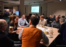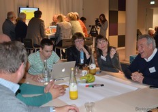 Tafel 6 had het thema 'Transparantie'. Deze presentatie kreeg de hoogste beoordeling. Ook het statement 'Biopedia transparant over biologisch' scoorde goed. De mannen van links naar rechts: Rob van den Berg (De Halm), Uli Schnier (Raad van Toezicht Bionext), Sven Henze (AGF-inkoper bij Udea), Bavo van den Idsert (Directeur Bionext) en naast hem Jan Jaap Jantjes (voorzitter Biohuis).