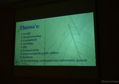 "Stemmen tellen. Het thema Transparantie (tafel 6) won met twee derde van de stemmen, daarna volgde Gezondheid (tafel 3) en de gedeelde derde plek was voor Eerlijk (tafel 1) en Voorlichting, communicatie, informatie, kennis (tafel 10). "Dit zijn dus de belangrijkste thema's om mee aan de slag te gaan. Vooral onder het begrip Transparantie kunnen we dus een dikke streep zetten", aldus dagvoorzitter Harm van Dijk."
