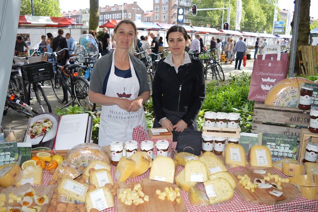 Landgoed Mariënwaerdt kon niet ontbreken op de Lentemarkt. Sylvia Roldanus en Emine Bakac sneden de hele dag door stukjes biologische kaas voor de bezoekers.