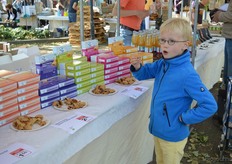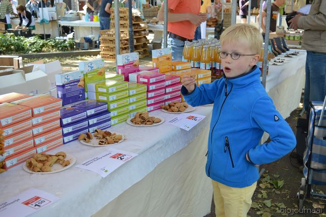 Bij Natudis konden kinderen onder meer proeven van de Molenaartje fruitrepen. Dit jongetje liet die kans niet liggen.