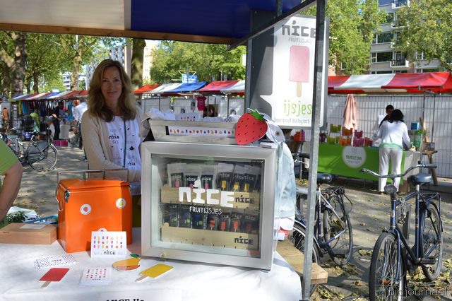 "Geheel toepasselijk bij het zonnige weer introduceerde zij op de Lentemarkt dit nieuwe ijsje van bosbessen en Earl Grey thee. "In plaats van suiker bevat dit ijsje onder meer witte druivensap en honing. De bosbessen groeien in het Noorderbos. Dit is de eerste partij die we zelf hebben ingekocht. We weten daardoor exact waar de bessen groeien. Op deze manier willen we onze productie steeds transparanter maken."