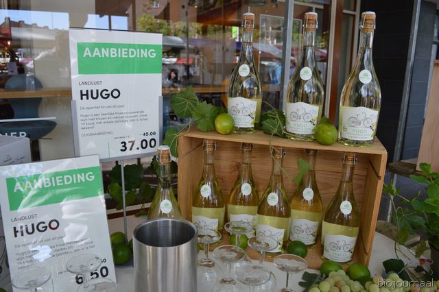 "Hugo is een Duitse biologische wijn. "Het is een frisse mousserende wijn met limoen en vlierbesbloesem."
