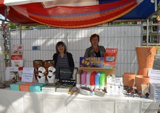 "Annet en Yvonne van Brunschot in de kraam van Floris Recycled Stationery. "We zijn met name gespecialiseerd in gerecyclede wenskaarten", vertelt Yvonne."