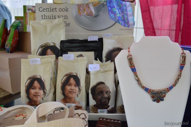 "In de kraam stond deze biologische koffie van Peeze. Gerard: "We vragen ons af of er bij de Wereldwinkels ruimte is voor deze koffie naast de koffie in het bestaande assortiment. Het mooie is dat deze koffie niet alleen biologisch is, maar ook Fairtrade en klimaatneutraal."