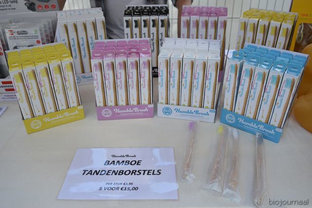 Bij Eco-groothandel waren onder meer deze bamboe tandenborstels van Humble Brush in de aanbieding.