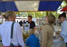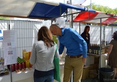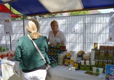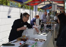 Ook DO-IT was van de partij. Anke laat hier twee bezoekers proeven van de olijven van La BIO IDEA.