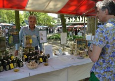 Fred Dwarshuis stond met zijn Can Solivera - 'Wilde olijflie' op de markt.