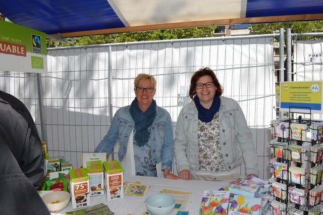 De Wereldwinkel is ook gevestigd in De Groene Passage en daardoor uiteraard van de partij op de Lentemarkt.