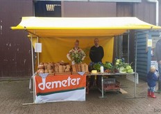 "De open dag bij Tuinderij Vrij Waterland begon wat druilerig. Tegen de middag ging de zon schijnen en kwamen er meer mensen bij ons kijken. De dertig liter soep is schoon opgegaan, dus er zijn zeker honderd mensen geweest. Het is een gezellige dag geweest met accordeonmuziek, koffie, thee en taart. Al met al voldoende belangstelling voor onze mooie tuin en winkel met de daar te kopen groenten en bossen bloemen."