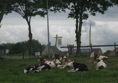 "De overige runderen lopen allemaal buiten, maar konden bezichtigd worden door een rondje met de huifkar langs alle velden te maken."