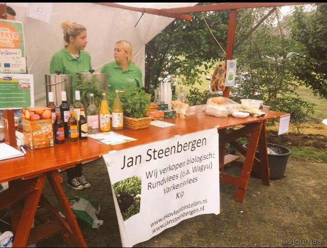"Mark Steenbergen doet verslag namens Jan Steenbergen Biologisch Vlees in Ansen (Drenthe): "Jan Steenbergen Biologisch Vlees is een bedrijf dat sinds 1999 een volledig biologische bedrijfsvoering kent. Een bewuste keuze, omdat we af wilden van de chemische middelen. Kort na de omschakeling van een gangbare bedrijfsvoering naar een biologische bedrijfsvoering zijn we begonnen met fokken van Wagyu-runderen, waaruit het grootste gedeelte van onze kudde nu bestaat. Dit rund komt van origine uit Japan, waar het oorspronkelijk werd gebruikt als trekdier. Het Wagyu-rund heeft als bijzondere eigenschap dat het vlees doorregen is met dunne streepjes vet (marmering). Hierdoor ontstaat een stukje vlees met een unieke smaak. Onderzoek heeft overigens uitgewezen dat het vet van het Wagyu-rund cholesterol arm is."