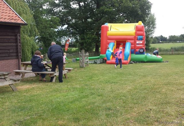 "De bezoekers konden zich verder vermaken met een rondleiding van de boer zelf en onder het genot van een kopje koffie met koek de kleinsten in de gaten houden die op traptrekkers en in de zand bult of springkussen zich prima vermaakten."