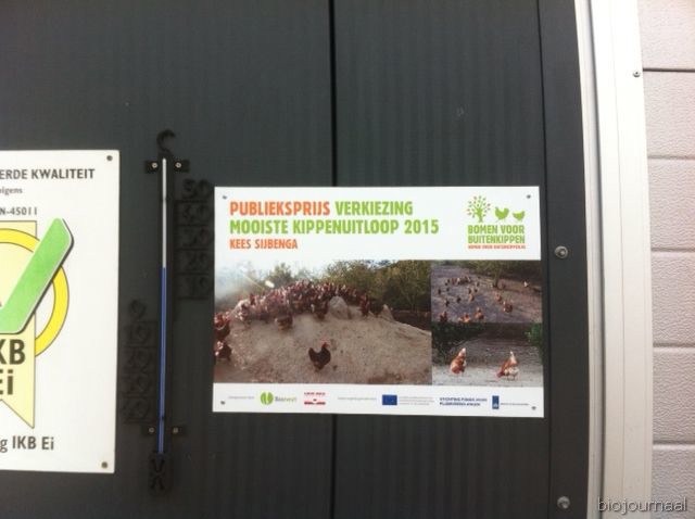"Ze hebben onlangs de publieksprijs gewonnen in de verkiezing Mooiste Kippenuitloop 2015."