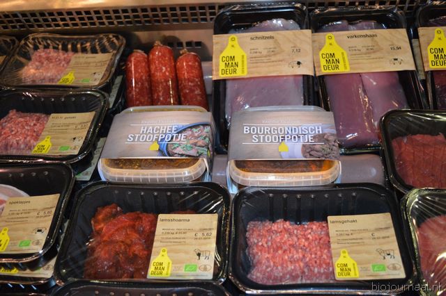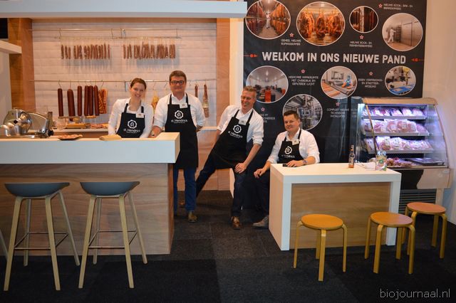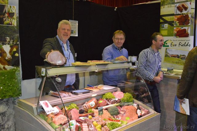 Ecofields breidde het assortiment uit met een kalfsgebraad, runderrookvlees, rauwe hammen en per stuk verpakte en gebraden gehaktballen. V.l.n.r. Teun Gundelach, Matthijs van Veenschoten en Bart Boon.