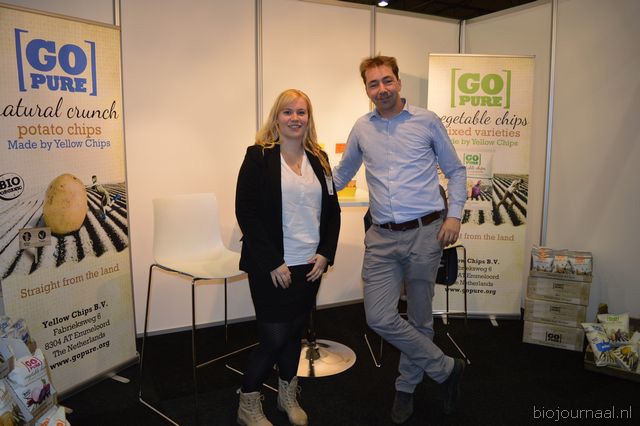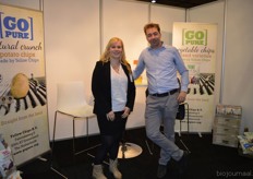 "Renate Luitwieler en Jesse van 't Lam met de chips van Go Pure. "We verwachten de komende tijd nog verder te kunnen gaan groeien", aldus Jesse."