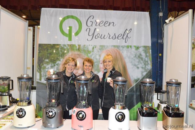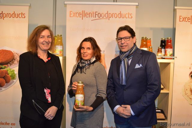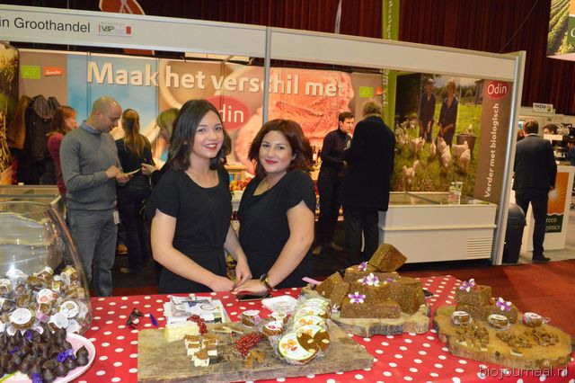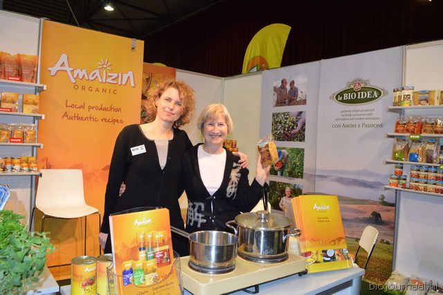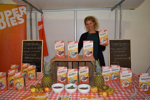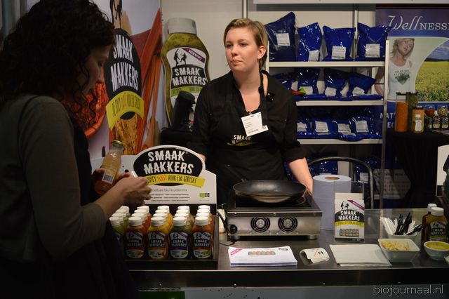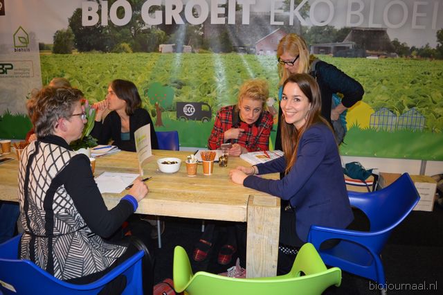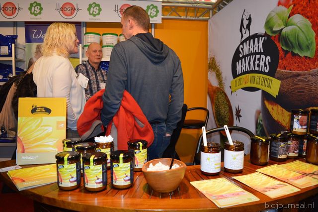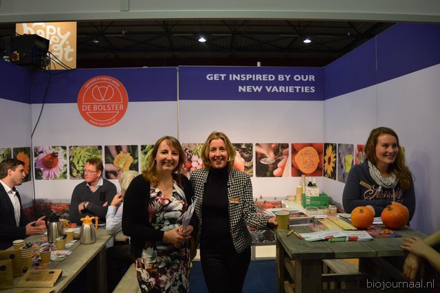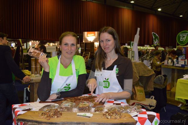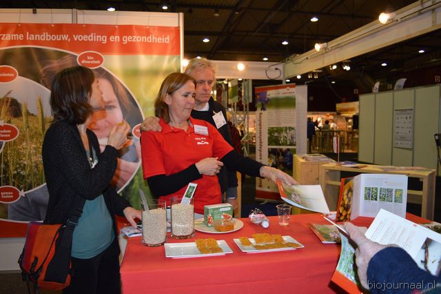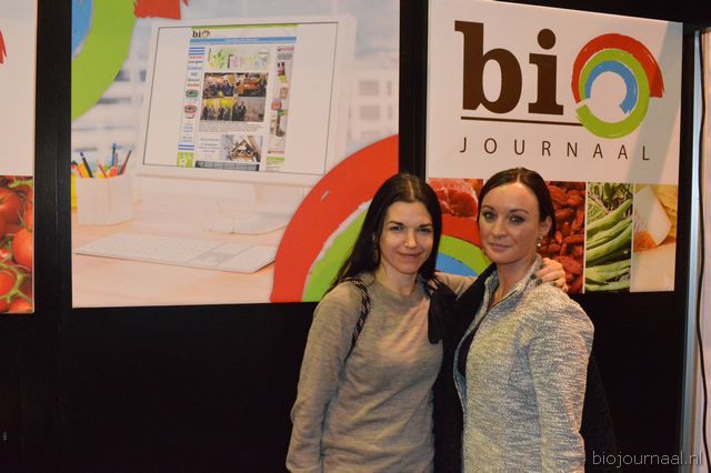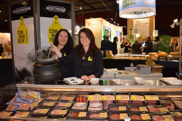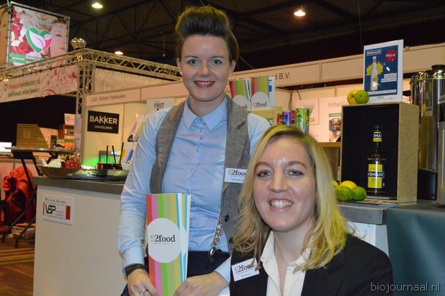 Sandra Commandeur en Sandra Mooij lieten proeven van de nieuwe producten van Commandeur. Commandeur presenteerde zijn nieuwe look op de Bio-beurs.