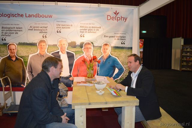 "Christoffel den Herder (rechts), senior adviseur biologische akkerbouw en vollegrondsgroenten van Delphy. Dit is de nieuwe naam van DLV Plant en GreenQ. "In de klassieke oudheid was 'Delphi' de plaats waar men bijeenkwam met vragen over gewassen, vruchtbaarheid en de oogst, daarom vonden we dit een toepasselijke naam", vertelt Jos van Hamont."
