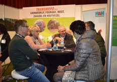 "Gert Jan van Beek en Erwin van de Beek kregen veel vragen op zich afgevuurd. Gert Jan: "De pluimveemarkt is een interessante markt voor potentiële omschakelaars. Het is nu nog niet zo druk, we verwachten de meeste boeren pas vanmiddag."